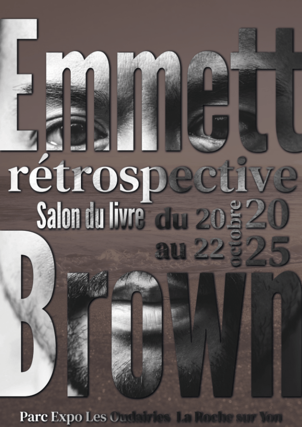 Réalisation d’une affiche avec typographie en double exposition pour un salon du livre (affiche pour événement fictif). Les critères pour cette affiche était les suivants: réalisation d’une affiche pour un salon du livre qui met en lumière un auteur (fictif) en choisissant une ou des polices qui ressemble à son univers. Dans ce cas, l’auteur s’appelle Emett Brown est un essayiste dans le même style d’Albert Camus. Le texte a été modifié et mis en page sur Illustrator. L’affiche a été réalisée sur Photoshop.