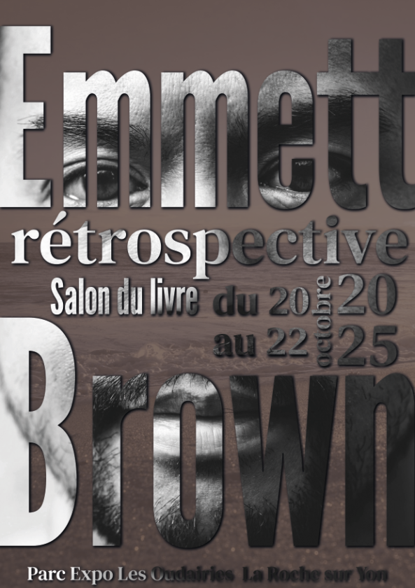 Réalisation d’une affiche avec typographie en double exposition pour un salon du livre (affiche pour événement fictif). Les critères pour cette affiche était les suivants: réalisation d’une affiche pour un salon du livre qui met en lumière un auteur (fictif) en choisissant une ou des polices qui ressemble à son univers. Dans ce cas, l’auteur s’appelle Emett Brown est un essayiste dans le même style d’Albert Camus. Le texte a été modifié et mis en page sur Illustrator. L’affiche a été réalisée sur Photoshop.